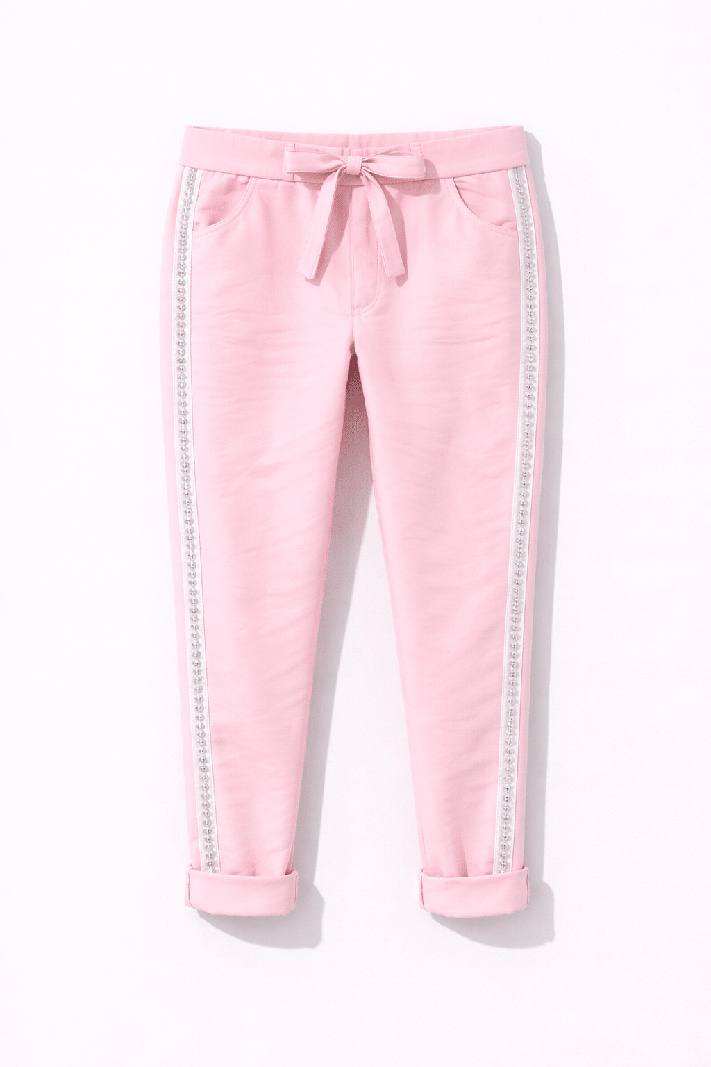 Seitlich glänzende Ziernähte mit flachen Nieten