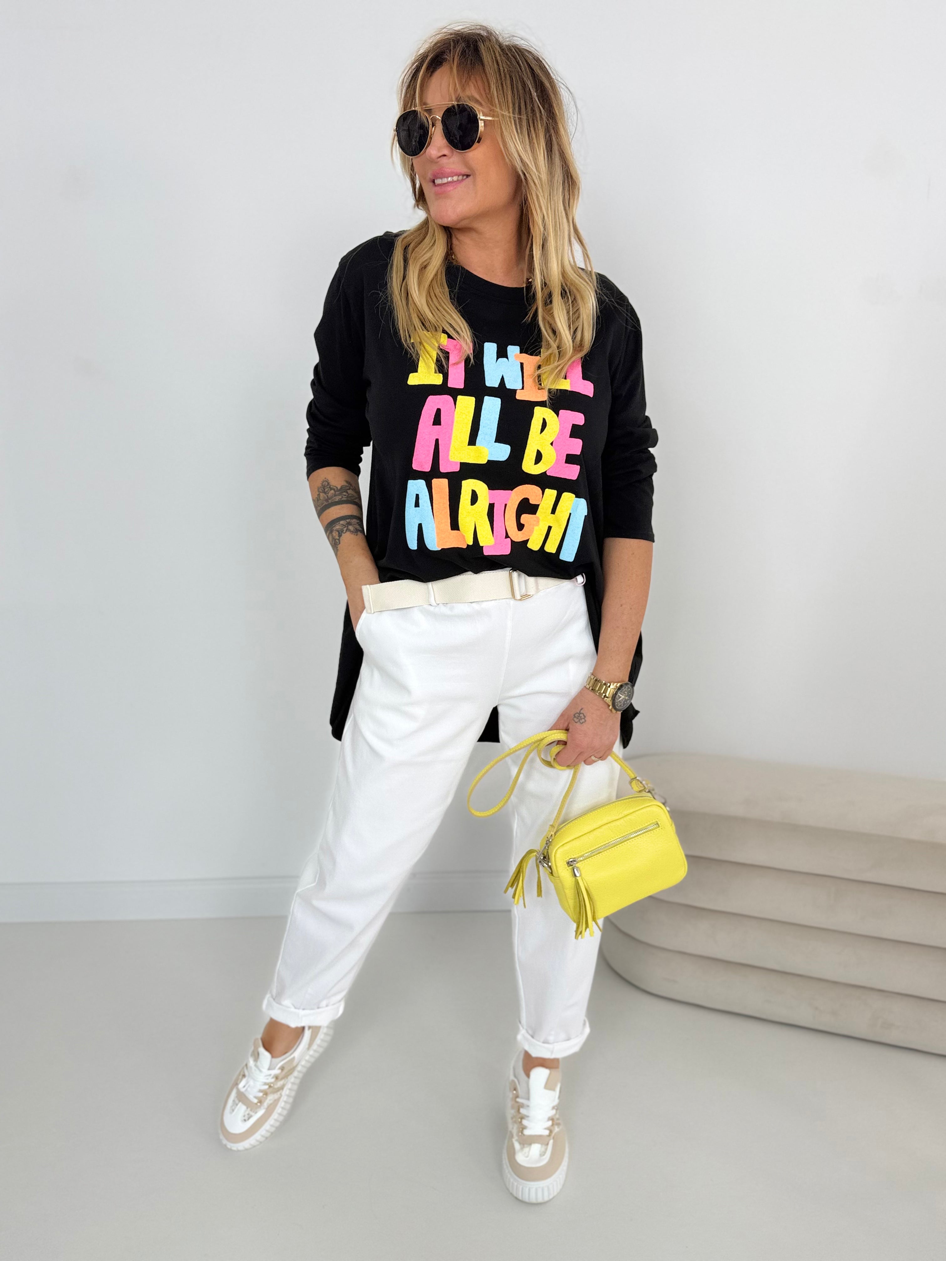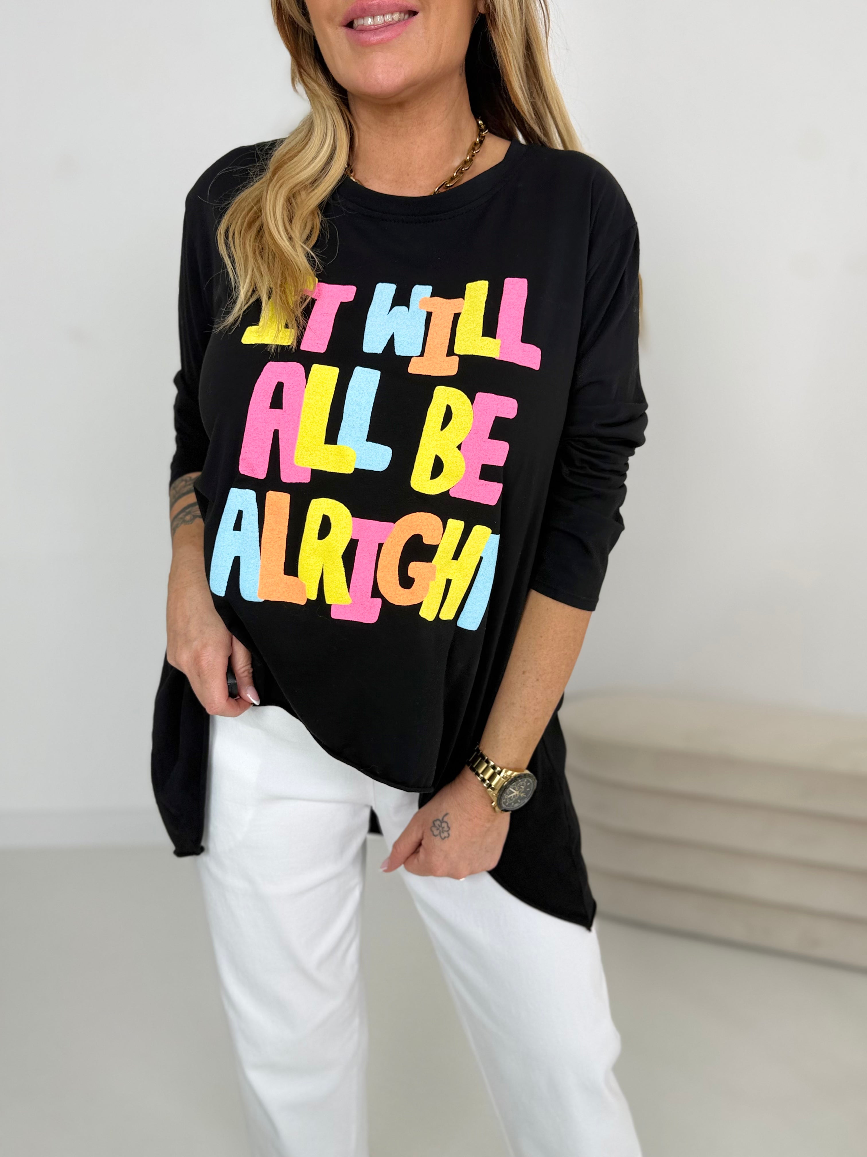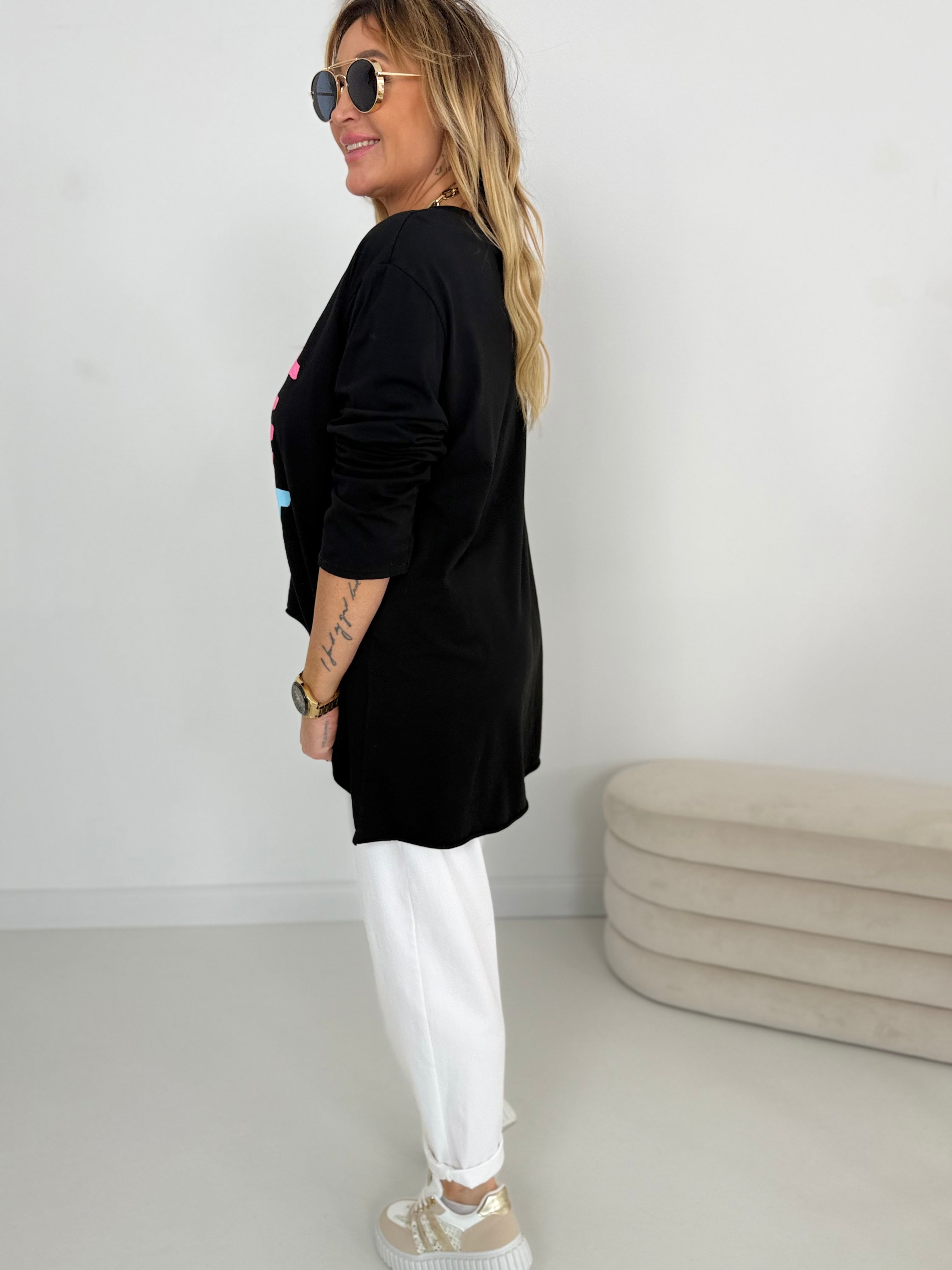 Vorne cooler Print und etwas kürzer geschnitten