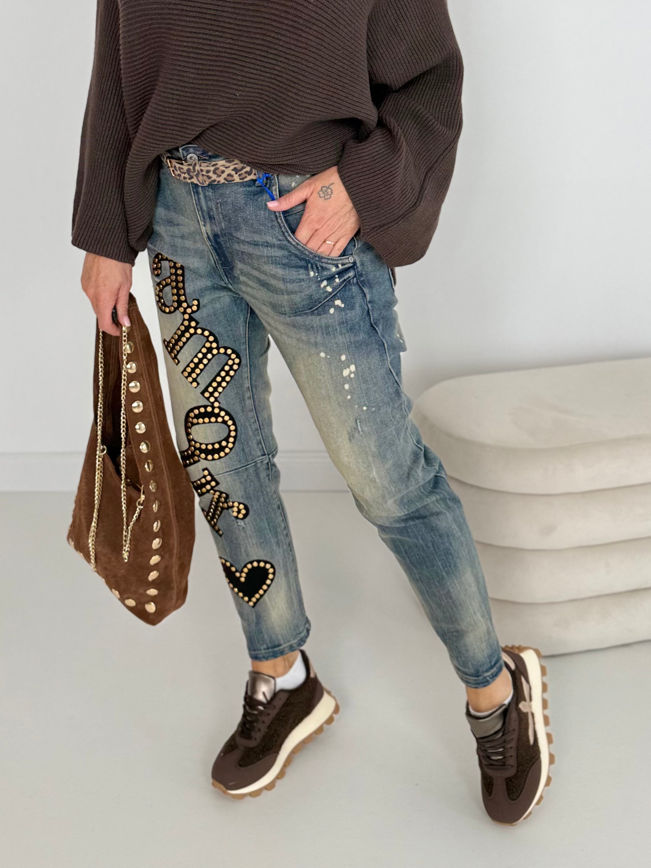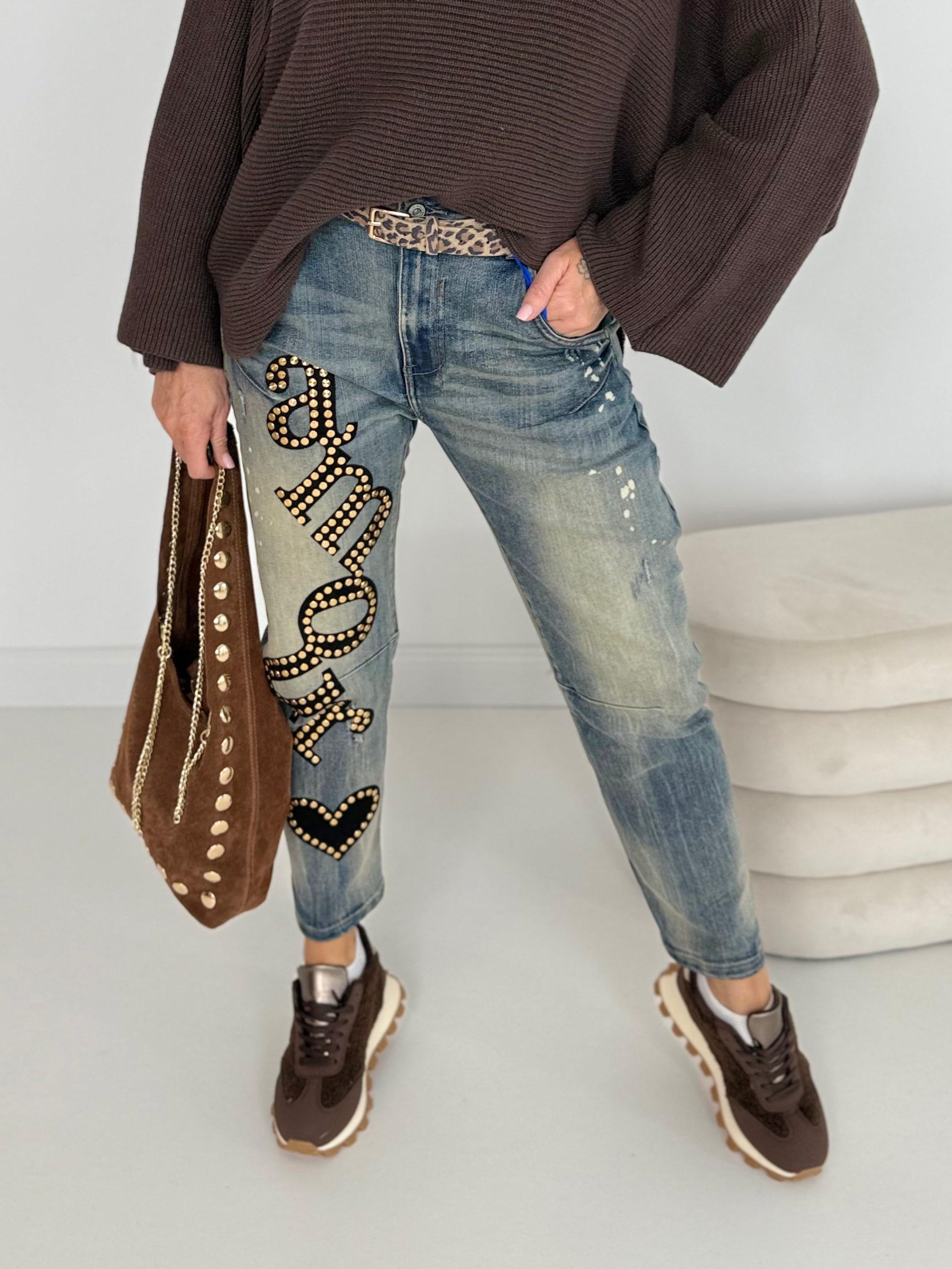 Cooler Print mit goldenen Nieten vorne