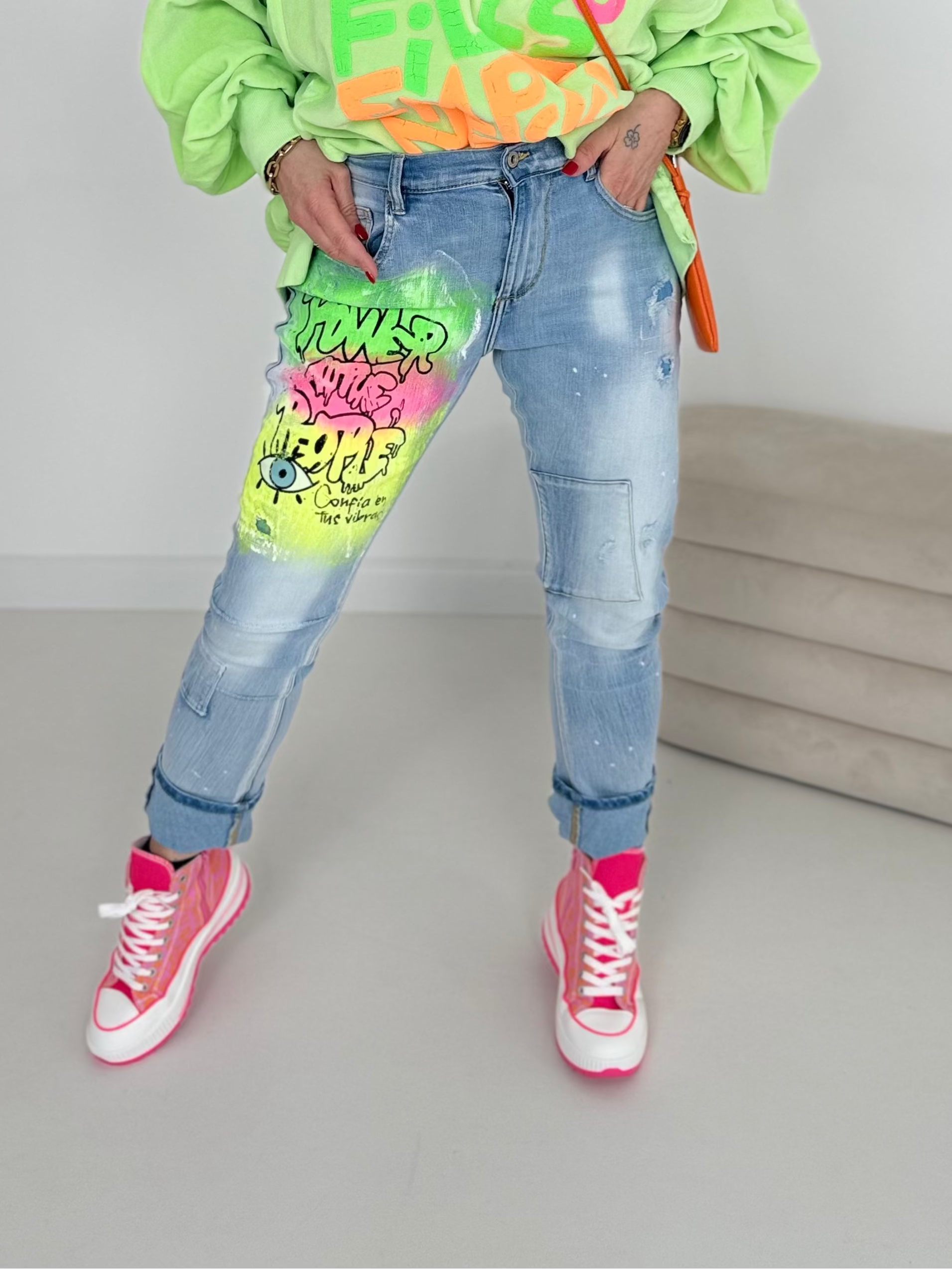 Coolt tryck framtill i neonfärger med bokstäver