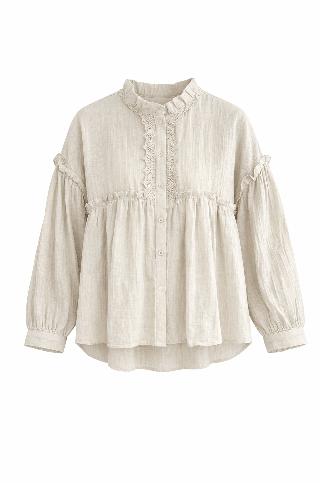 kleine Volants an Kragen und Vorderteil