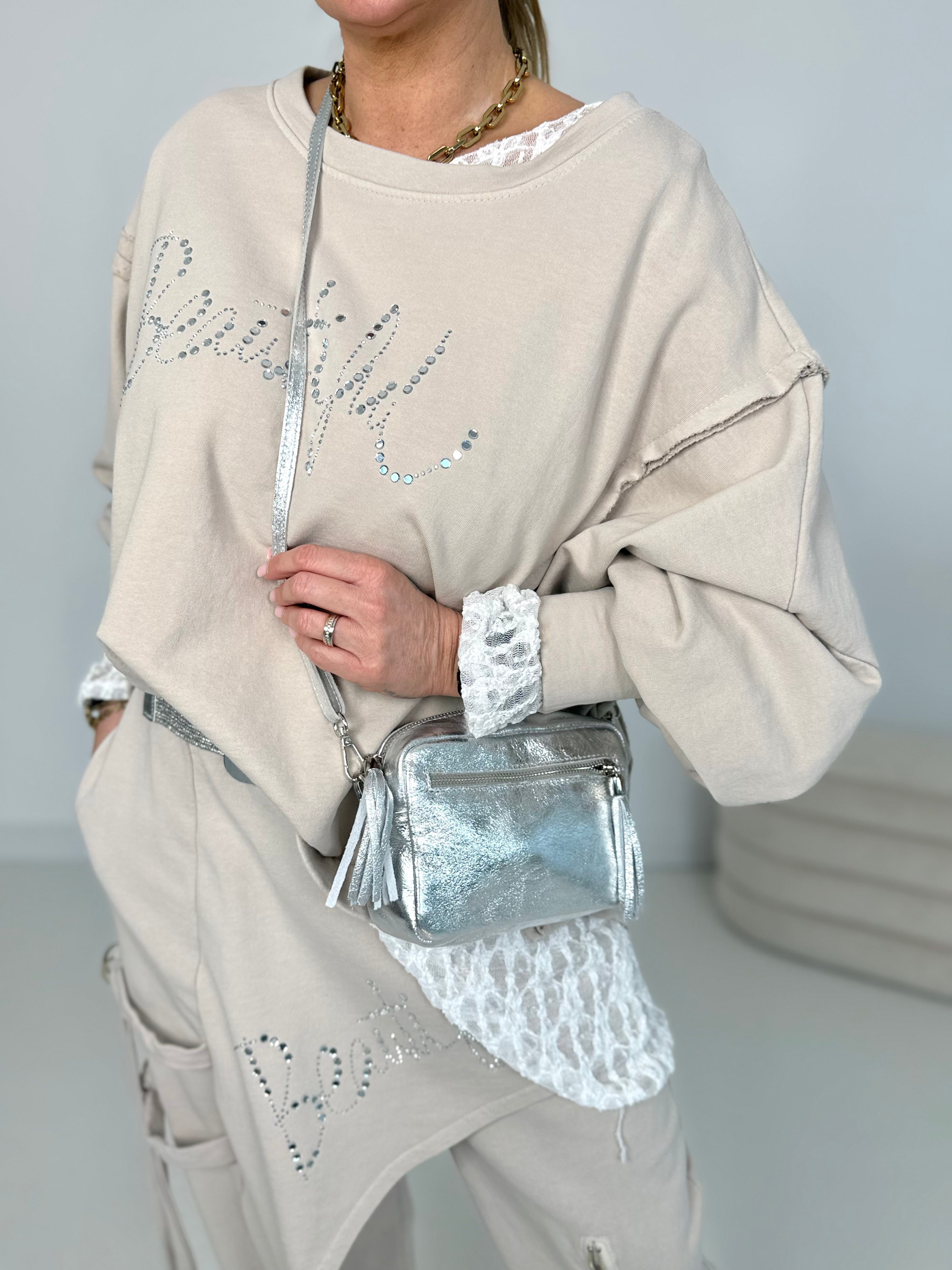 Vorne Schriftzug mit glänzenden Steinchen